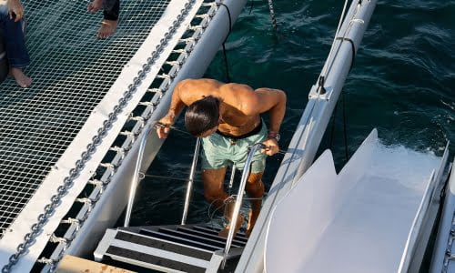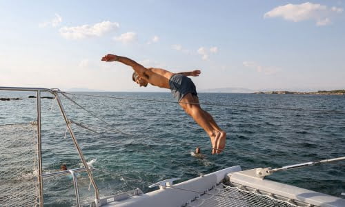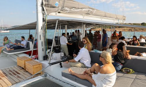 Picture your team bonding under the Mediterranean sun, as you cruise through the stunning Saronic landscapes, each wave an opportunity for new ideas to surface. Our catamaran can whisk you away to some of the most captivating destinations around Athens, including Agistri and Aegina, Prassonisi and Asteras, Sounio, and more. Whether you’re planning a training workshop, a team-building adventure, or a celebratory company party, our fully-equipped floating venue offers an unparalleled blend of business and leisure. So, chart a new course for your corporate event and let the sea inspire your team’s journey to new horizons.