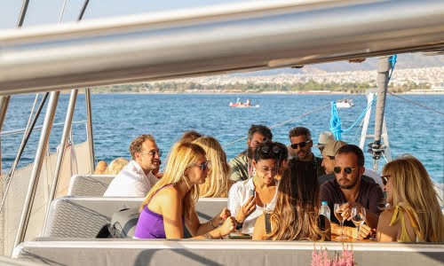 Set sail for success with our extraordinary catamaran. Leave mundane meeting rooms and conference centres behind, and let the gentle lull of the sea be your backdrop for an unforgettable experience along the Athens Riviera and nearby islands. Departing from a marina conveniently located in Alimos, our specially designed catamaran offers an unparalleled setting for your corporate gathering, accommodating up to 47 participants. With a shaded area featuring comfortable seating and tables, as well as a spacious sun deck, this vessel is more than just a mode of transportation; it’s a floating oasis of creativity and collaboration.